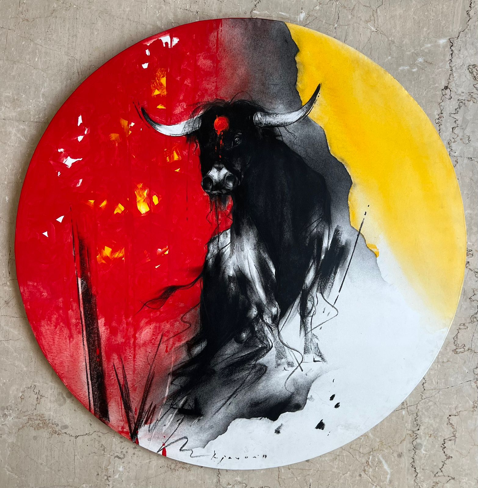 - Bull, 102 cm round, charcoal/acrylic on canvas