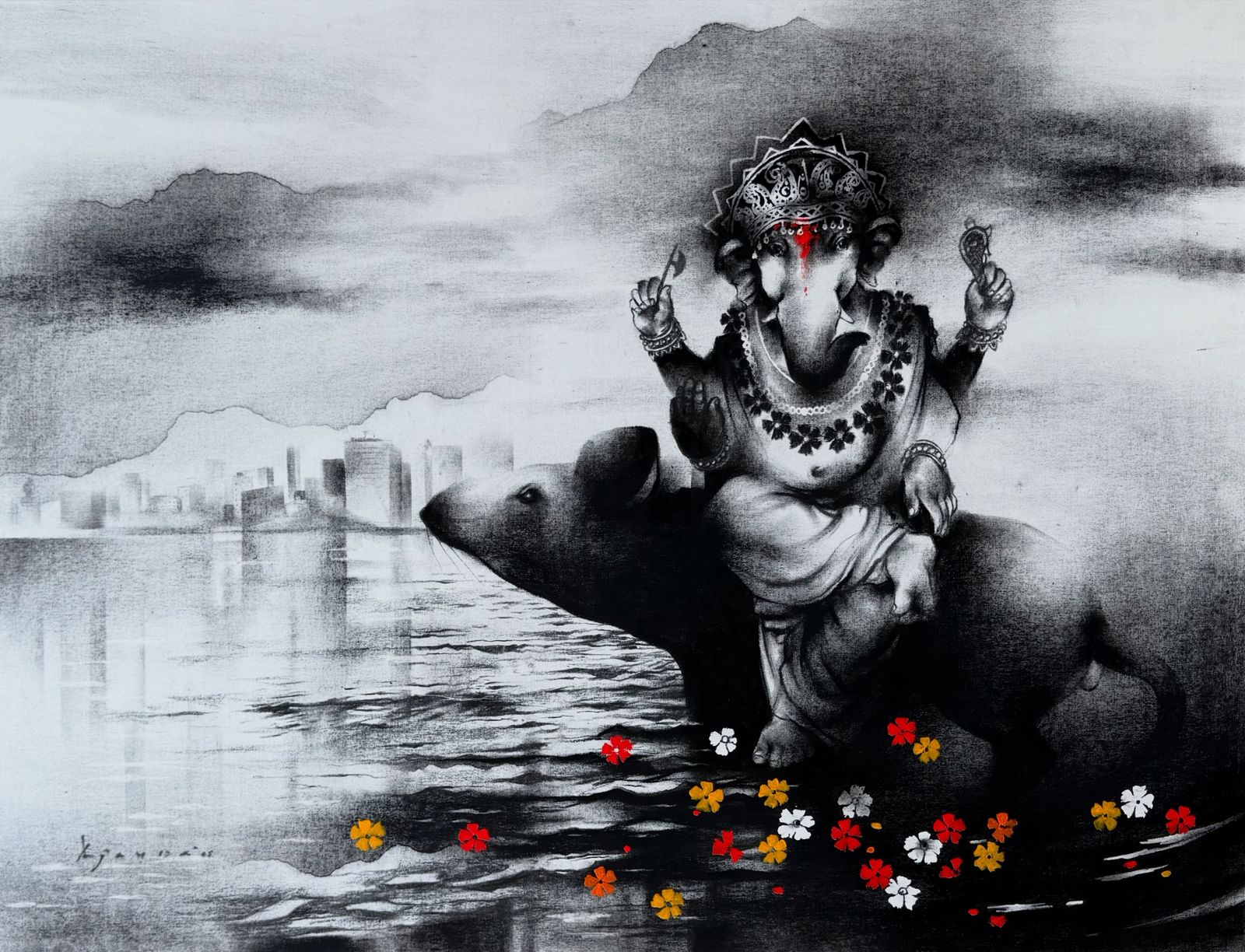 In my work on “God,”  I express a deeply personal concept of reverence—one that transcends societal definitions. My paintings reflect a belief that is ingrained in my artistic quest. Through my work, I try to capture the essence of consciousness and faith that defies the norms. It’s my attempt to invite you to experience spirituality as an intimate, individual journey.